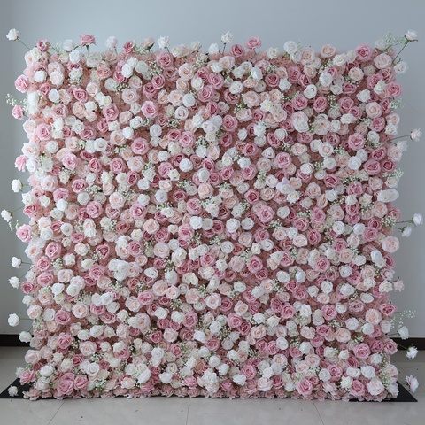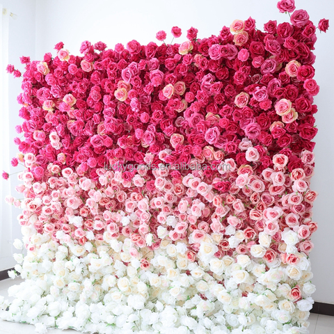 WG25065 Pared de flores decoración de boda Rosa Artificial pared Floral 5D rollo de tela panel de flores telón de fondo Día de San Valentín 8x8 pies