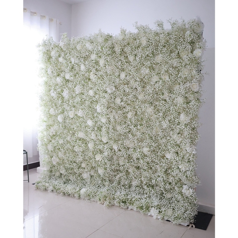 Fondo de pared de flores rosas artificiales LFB2301 rosa blanca babysbreath pared de flores falsas 8x8 pies para cumpleaños día de San Valentín